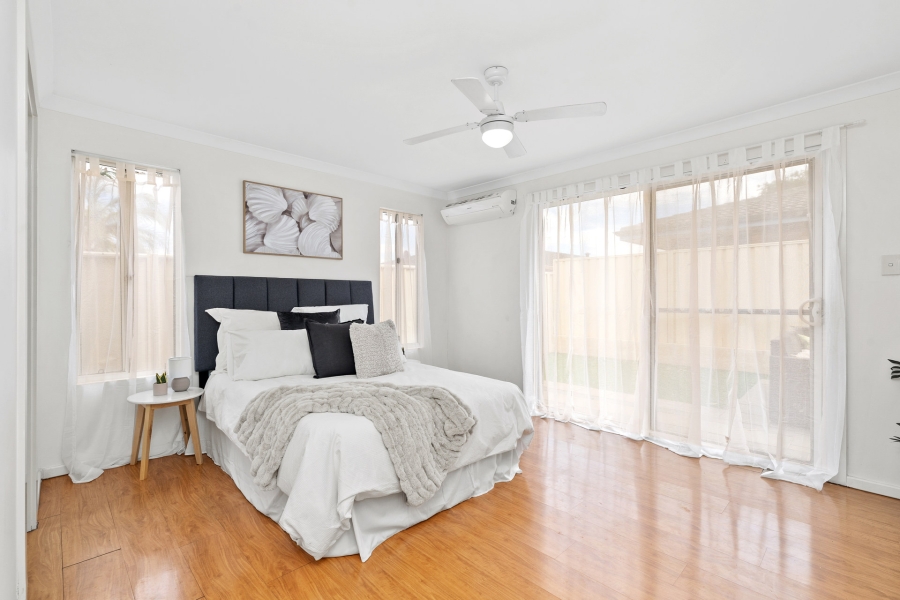 The front entry of this low maintenance property opens up into the roomy, bright and neutral open plan kitchen, living and meals area. This is a generous sized space with warm wooden floorboards from which the bedrooms flow. The three minor bedrooms allow in plenty of natural light and all have fans to keep you comfortable. Whilst the master suite is well appointed with a good sized ensuite and sliding door access to the courtyard for added convenience and amenity.